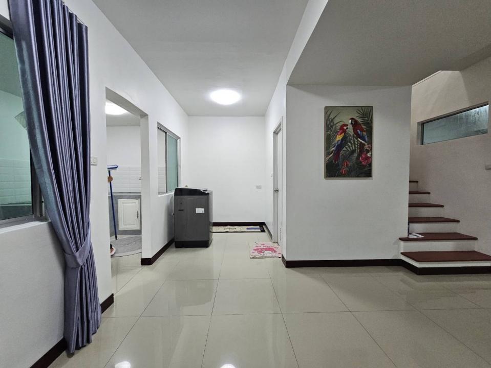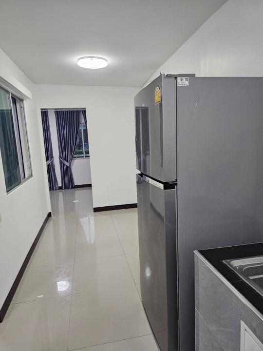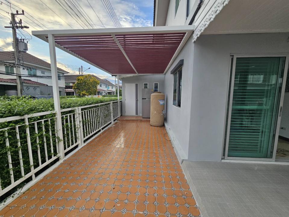 บ้านปูกระเบื้องมุงหลังคาต่อเติมเต็มพื้นที่ มีพื้นที่ใช้สอยกว้างมาก สะอาดมาก พร้อมเข้าอยู่ได้เลย ผนังกำแพงห้องครัวใหญ่ ติดกระเบื้องตั้งแต่พื้นชนเพดาน สะอาด ดูแลง่าย ใกล้วัดลาดปลาดุก รร กสินธร เชนทรัลเวสเกต